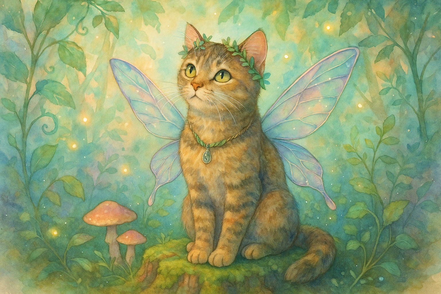 In the dappled hush of a midsummer dusk—just after the last sunbeam curtsies and before the first cricket tunes its fiddle—KayTee appears. Not walks in, mind you. Appears. As though summoned by the scent of honeysuckle and the distant giggle of a brook. She wears her crown of leaf and mischief like an empress of whimsy, and those wings? Spun from moon giggles and dragonfly sighs. She's part sprite, part sovereign, all sass. Rumors abound she once bewitched a squirrel into baking scones and taught a toad how to waltz. True or not, she’ll never say—just blink slowly and swish her tail like a wand.