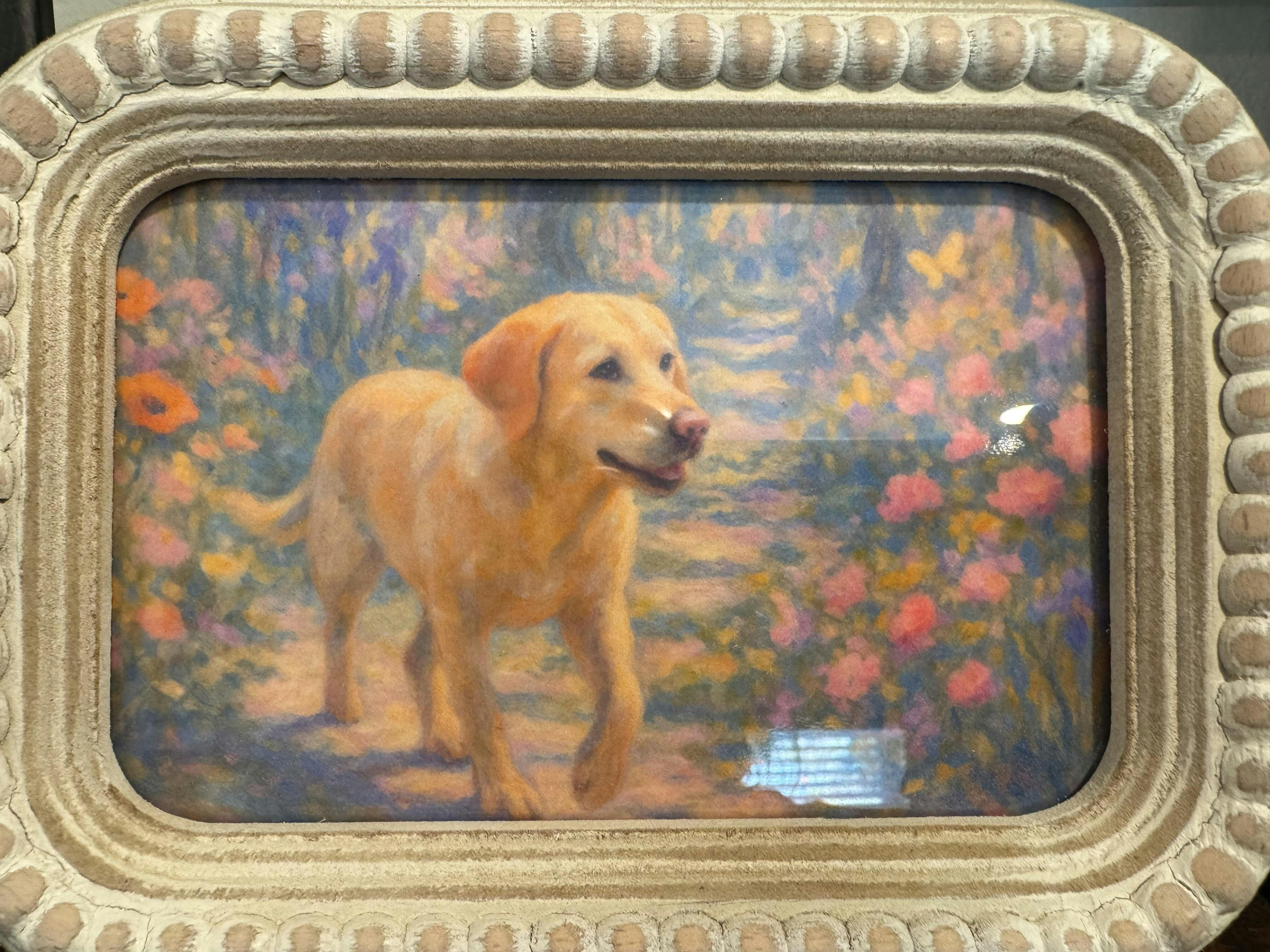 A gentle hush settles over a sun‑kissed meadow as brushstrokes of lavender, coral, and gold sway in a breeze you can almost feel. Along the dappled path, our tranquil wanderer moves with unhurried grace—each paw‑step rippling through petals like whispered applause. Warm light pools on russet fur while distant blossoms blur into dreamy pastels, as though the very air has dissolved into paint and poetry. Hang this portrait wherever you crave quiet wonder, and let it remind you that some journeys need no destination—only a heart open to the colors of the moment.